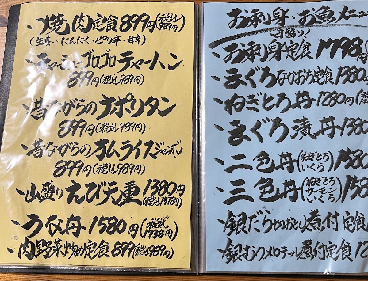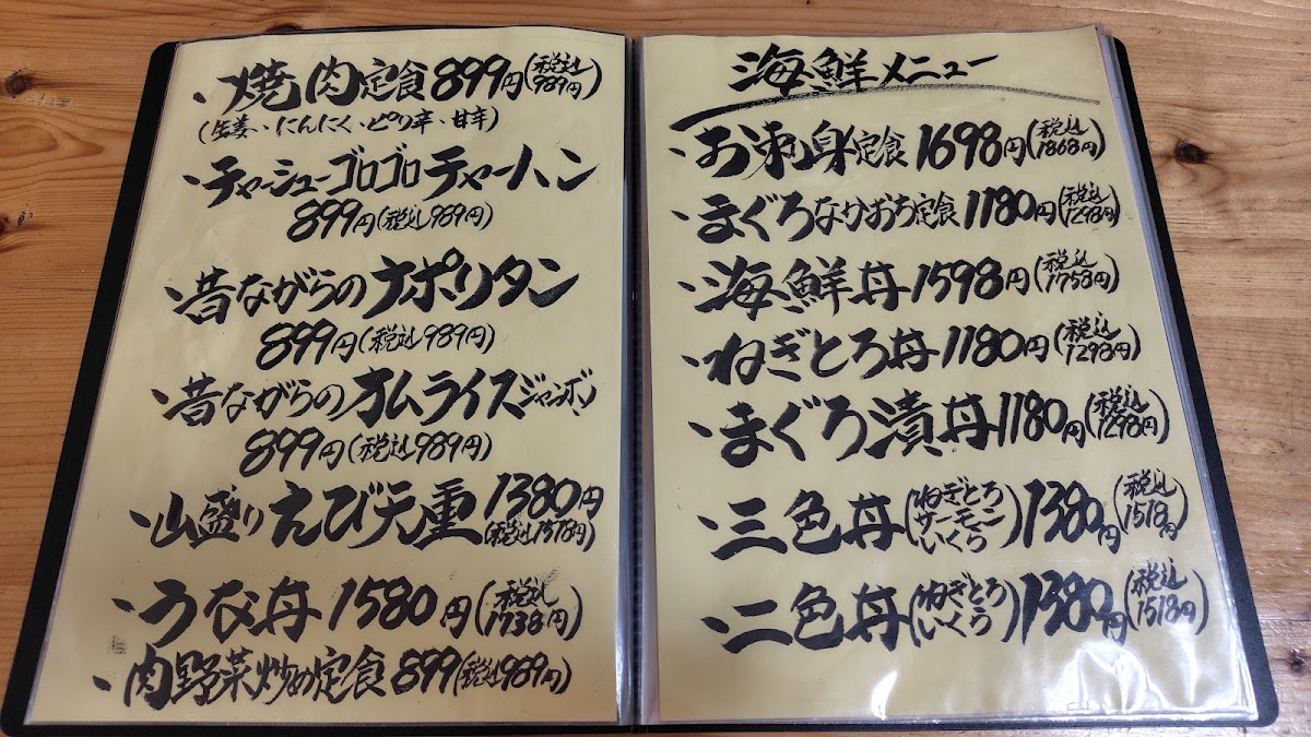Kasaya Shokudo’s menu reads like a greatest-hits lineup of comforting Japanese set meals and seafood bowls, with enough variety to keep repeat visits exciting. The seafood-forward options feel like the heart of the kitchen: 海鮮天丼 and 海老天丼 deliver that satisfying tempura-and-rice combination, while rice bowls like うに丼です, 二色丼, ダブル漬け丼 さわらと鮪, and 本マグロネギトロ lean into fresh, straightforward flavors that are best enjoyed without overthinking. If you prefer a balanced, “just order and relax” meal, the set menus are the safe and filling route-日替り刺身定食 changes by the day, 焼き肉定食 ピリ辛 adds a spicy kick, and hearty classics like カツ丼 and ジャンボチキンカツ定食 are clearly designed for big appetites. Fried favorites also show up strongly with 牡蠣フライ定食 / カキフライ定食 and あじフライ, giving you that crisp exterior and satisfying bite that pairs perfectly with rice. On the more casual, comfort-food side, オムライス brings a familiar home-style vibe, while チャーシューゴロゴロチャーハン and チャーシュー丼 make pork the main event in two very different, equally indulgent directions. Rounding things out, you’ll also spot staples like モツ煮, 中華そば, and small supporting dishes such as 漬物 小鉢, plus seasonal or dated listings like 2023 年 5 月 メニュー-overall, it’s a menu built around satisfying portions, clear flavors, and crowd-pleasing variety rather than fussy presentation.
